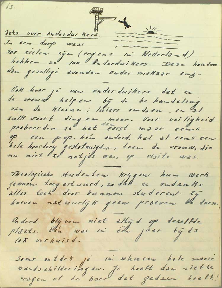 Iets over onderduikersOnderduiken is het zich verborgen houden voor iets of iemand. Tijdens de Tweede Wereldoorlog doken veel mensen onder omdat ze gezocht werden door de Duitsers of weigerden samen te werken met de Duitsers..