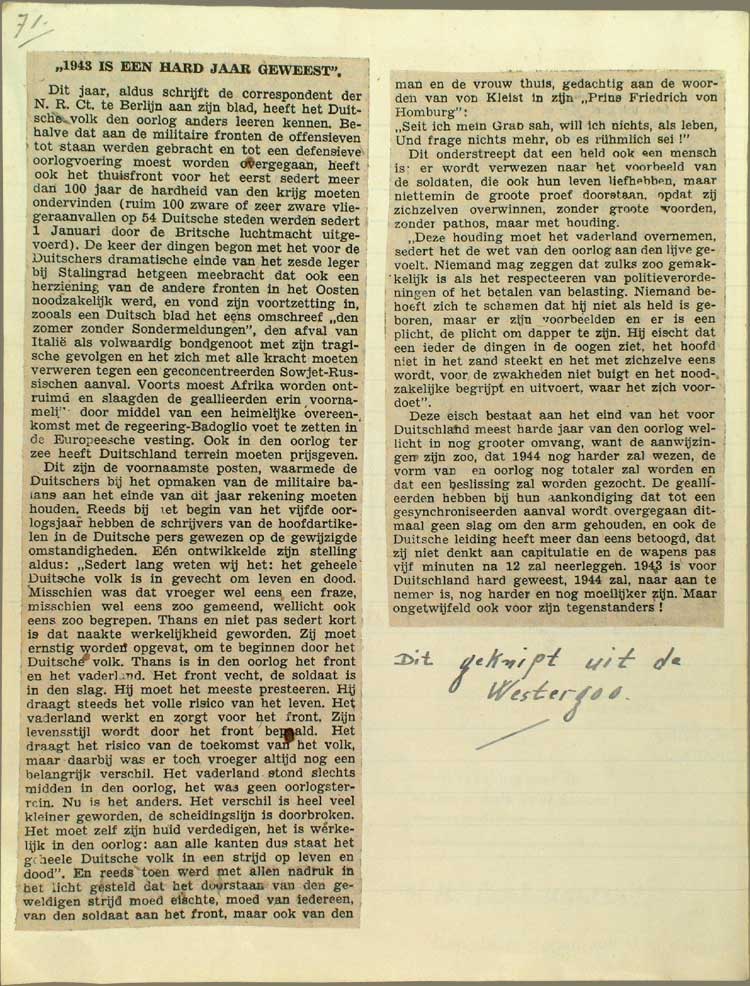 Krant die To af en toe gebruikt in haar oorlogsschriften..