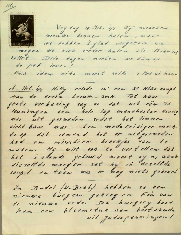 16-Mrt.-'44 HillyZus van To, officieel Hiltje Hofstra. Was ambtenares van de kinderwetten in Leeuwarden. reisde in een 2e klas coupé