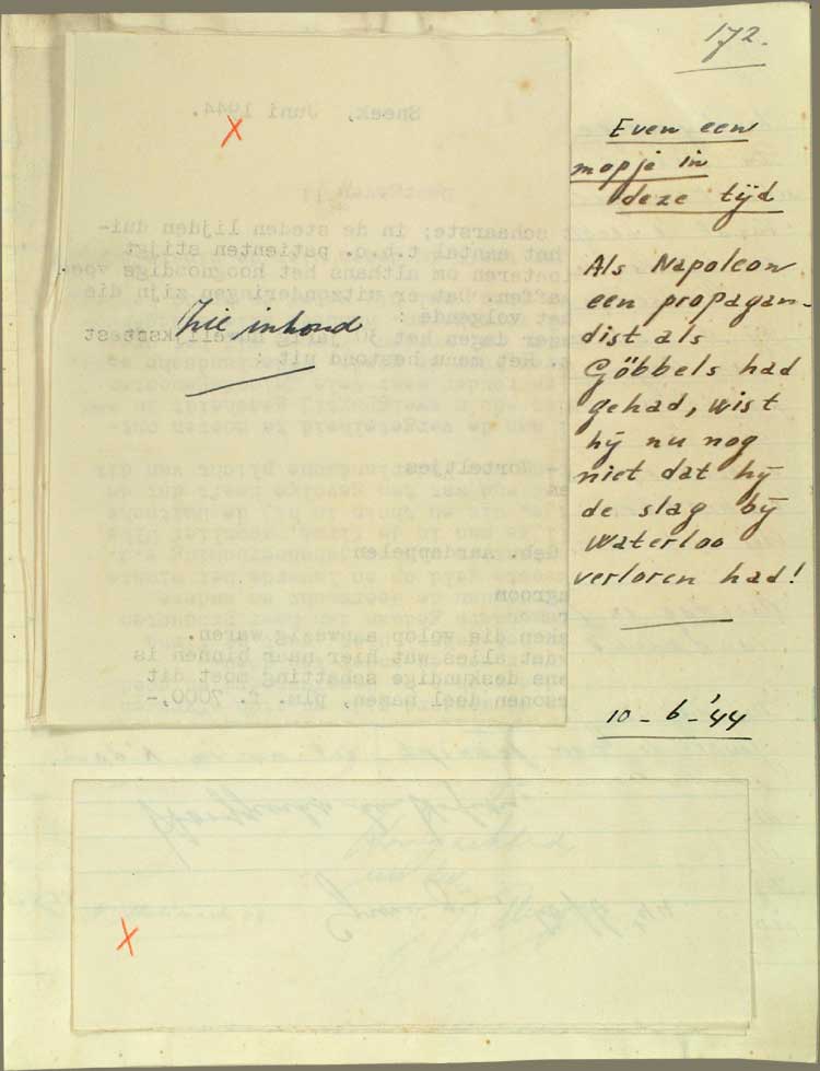 Even een mopje in deze tijd Als Napoleon een propagan- dist als Goebbels had gehad, wist hij nu nog niet dat hij de slag bij Waterloo verloren had! 10-6-'44