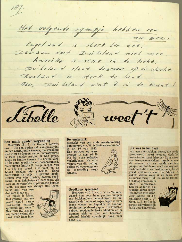 Het volgende rijmpje hebben ze nu weer: Engeland is sterk ter zee, Daaraan doet Duitsland niet mee Amerika is sterk in de lucht, Duitsland slaat daarvoor op de vlucht. Rusland is sterk te land, Maar, Duitsland wint 't in de krant!