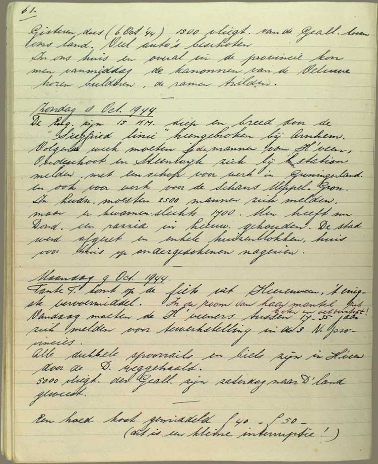 Zondag 8 Oct. 1944 De Engelsen zijn 15 km. diep en breed door de