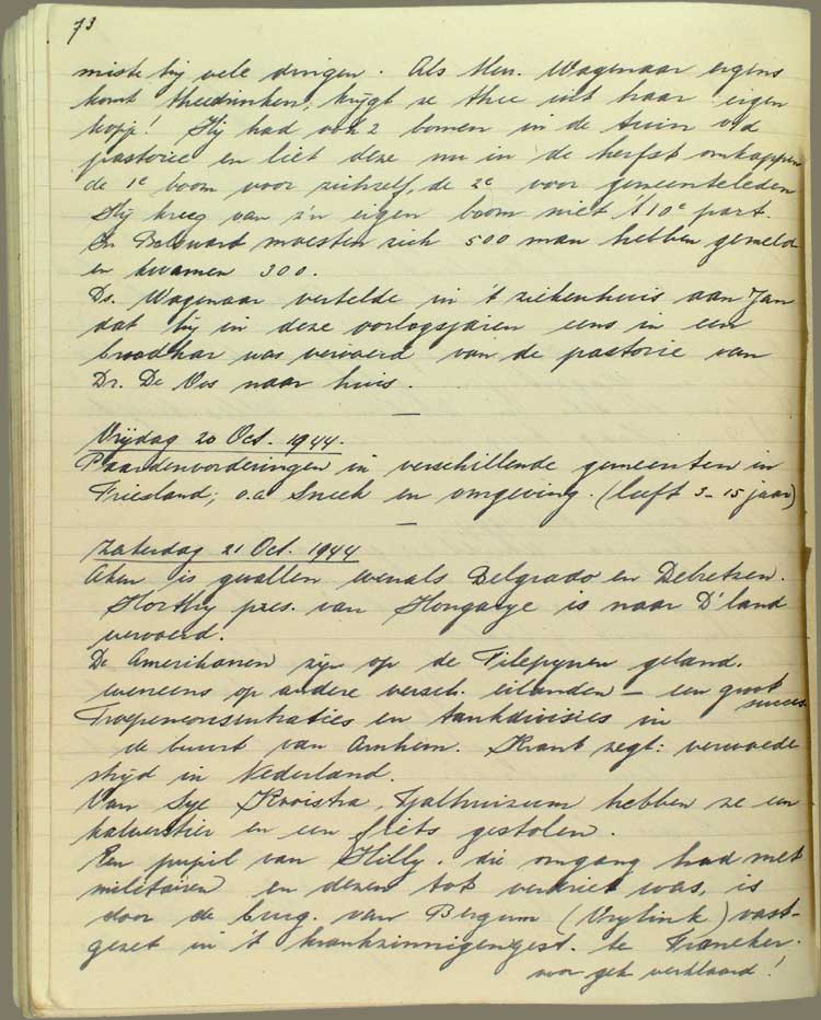 Zaterdag 21 Oct. 1944 Aken is gevallen evenals Belgrado en Delretzen.