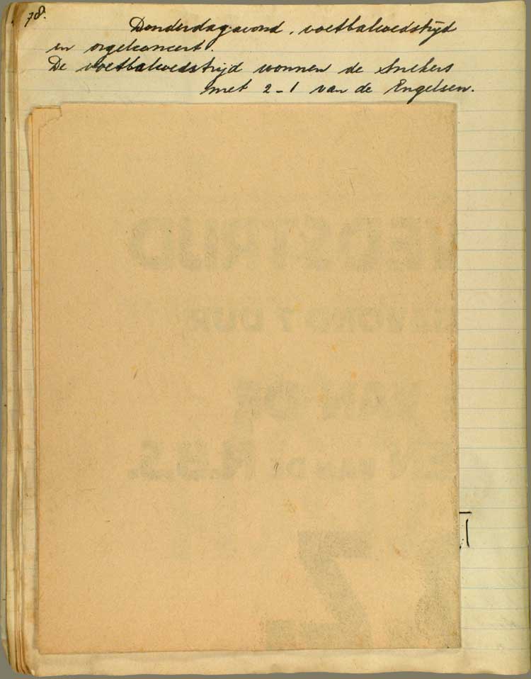 Donderdagavond, voetbalwedstrijd en orgelconcert De voetbalwedstrijd wonnen de Snekers met 2 - 1 van de Engelsen.
