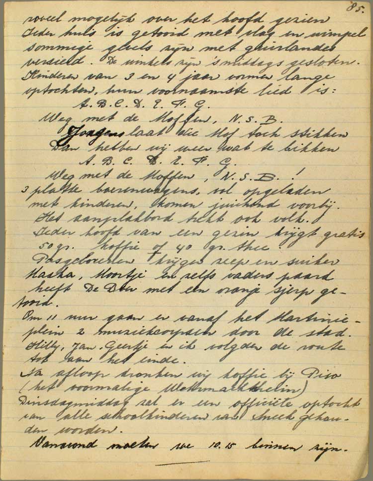 Weg met de Moffen, NSBPolitieke partij in Nederland, opgericht in 1931 door Anton Mussert en Kees van Geelkerken(1901-1976) Nederlands nationaal-socialistisch politicus, richtte in 1931 samen met Anton Adriaan Mussert(1894-1946) Anton Mussert richtte in 1931 de Nationaal-Socialistische Beweging (NSB) op, met hemzelf als ‘algemeen leider’. Mussert verwachtte als resultaat van de oorlog een nationaal-socialistisch Europa, waarin Nederland onder zijn leiding zou staan. Dit is nooit gelukt, wel mocht hij zich van Hitler vanaf eind 1942 ‘leider van het Nederlandse volk’ noemen, maar werkelijke macht hield dit niet in. Na de bevrijding werd Mussert ter dood veroordeeld. Hij werd gefusilleerd. de Nationaal-Socialistische Beweging (NSB) op, waarvan hij al spoedig de 'tweede man' werd. In hetzelfde jaar richtte hij de jeugdorganisatie van de NSB, de Jeugdstorm, op, waarover hij vanaf het begin het leiderschap had.. Ook wel afgekort als ' De Beweging' .De ideeën waren ontleend aan de Nationaal Socialistische Duitse Arbeiderspartij (NSDAPDe Nationaal Socialistische Partij van Adolf Hitler(1889-1945) Duits nationaal-socialistisch leider van het Derde Rijk en dictator. In 1933 werd Hitler rijkskanselier en in 1934 staatspresident van Duitsland. Zijn inval in Polen in 1939 leidde tot de Tweede Wereldoorlog. Door de snelle opmars wist hij grote delen van Europa te bezetten Het uitroeien van het jodendom en de vernietiging van het communisme waren zijn hoofddoelen. Op 30 april 1945 pleegde hij samen met zijn vrouw Eva Braun zelfmoord.. De partij was zeer racistisch en anti-joods en verheerlijkte het Duitse volk.) van Hitler. De NSB verwachtte als resultaat van de oorlog een 'nieuw Europa' onder Duitse leiding.