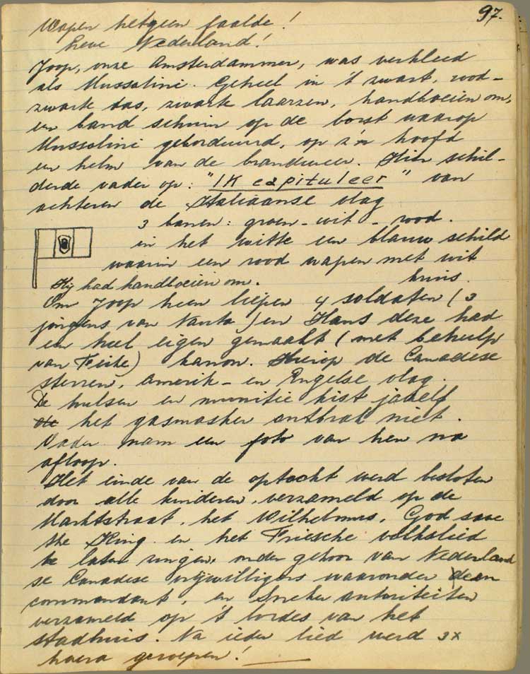 Marktstraat, het WilhelmusOp het volkslied Wilhelmus werden in de Tweede Wereldoorlog vele varianten bedacht, zowel spottend als serieus., God save