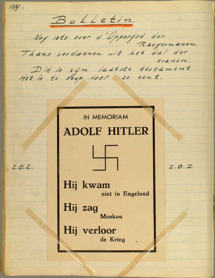 Bulletin Nog iets over d´Oppergod der Rasgermanen Thans verdwenen uit het dal der tranen Dit is zijn laatste testament Het is te koop voor 10 cent