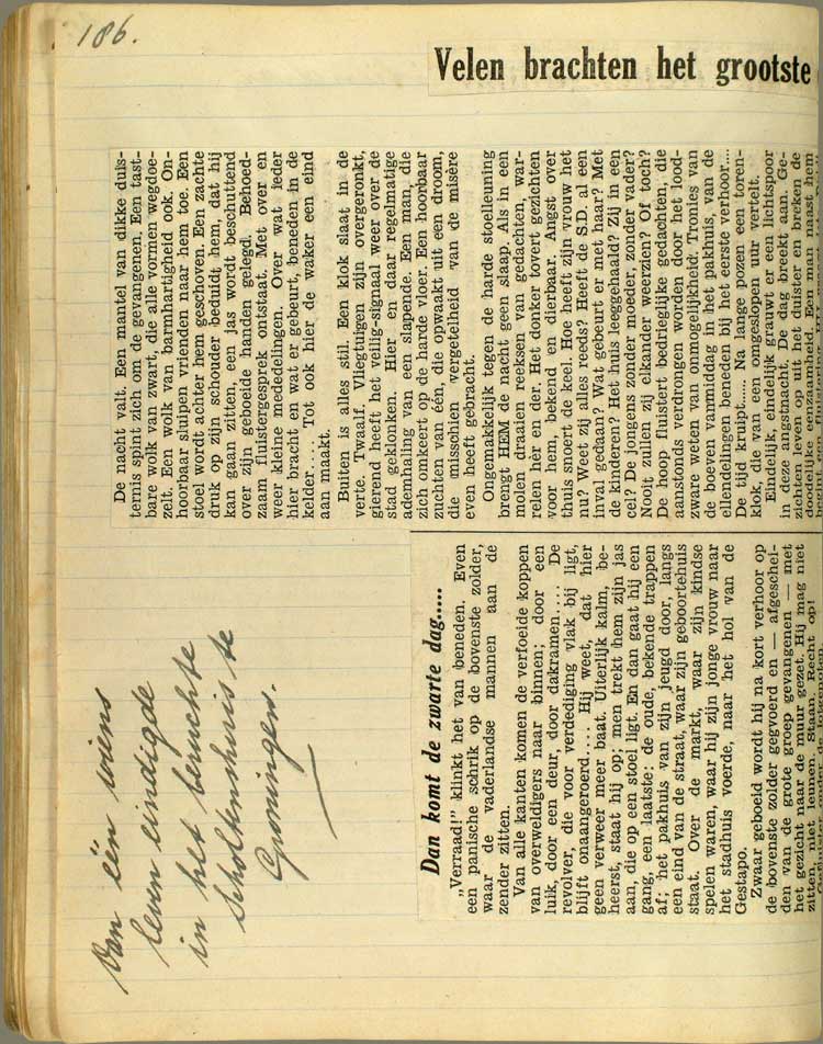 ScholtenshuisDe gevangenis in de stad Groningen waar veel mensen uit het verzetHet verzet tegen de Duitse bezetter, gedurende de Tweede Wereldoorlog. Onmiddellijk na de capitulatie op 14 mei 1940 ontstonden verzetsorganisaties en begon de verspreiding van illegale pamfletten en bladen. Op dit openlijke verzet reageerde de bezetter met arrestaties en het opleggen van collectieve geldboetes. Naarmate de onderdrukking harder werd, nam enerzijds het openlijk verzet af, maar groeide het illegale verzet. werden opgesloten en mishandeld door de Duitsers. te