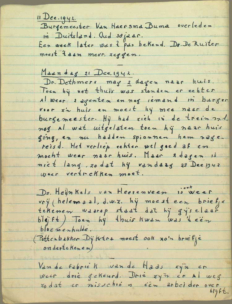 gijzelaarDit zijn personen die in een strijd gevangen worden genomen. Men neemt deze gevangenen om er voor te zorgen dat de tegenpartij, uit angst voor het leven van de gevangene, geen harde acties zal uitvoeren. De Duitsers namen veel gijzelaars en dreigden deze dood te schieten als het verzetHet verzet tegen de Duitse bezetter, gedurende de Tweede Wereldoorlog. Onmiddellijk na de capitulatie op 14 mei 1940 ontstonden verzetsorganisaties en begon de verspreiding van illegale pamfletten en bladen. Op dit openlijke verzet reageerde de bezetter met arrestaties en het opleggen van collectieve geldboetes. Naarmate de onderdrukking harder werd, nam enerzijds het openlijk verzet af, maar groeide het illegale verzet. iets zou doen. blijft) Toen hij thuis kwam was 't één bloemenhulde.