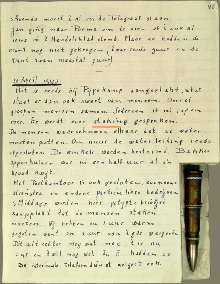 30 April 1943 Het is reeds bij Pijpekamp aangeplakt. Het