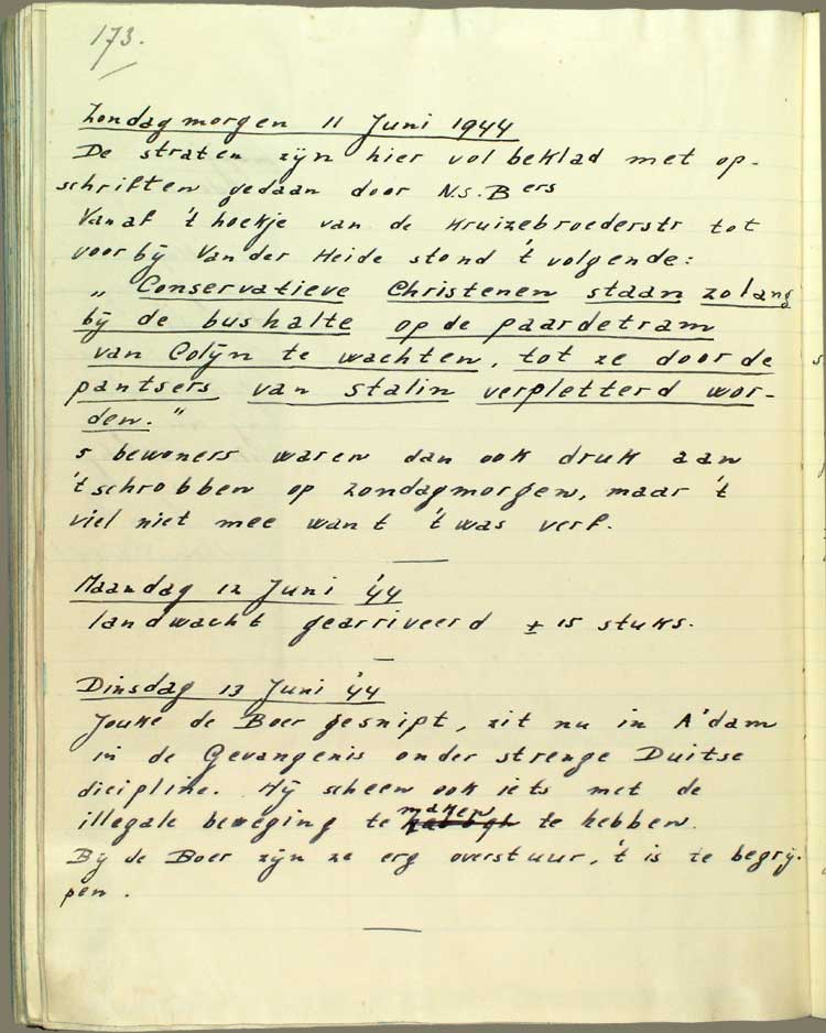 Zondagmorgen 11 Juni 1944 De straten zijn hier vol beklad met op-