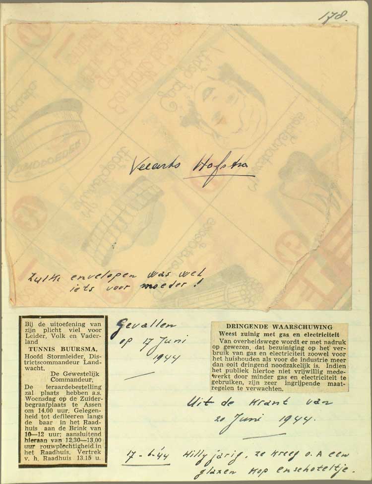 17-6-'44 HillyZus van To, officieel Hiltje Hofstra. Was ambtenares van de kinderwetten in Leeuwarden. jarig, ze kreeg o.a. een