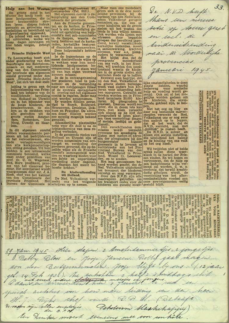 29 Jan. 1945 Hier slapen 2 Amsterdammertjes: 2 jongetjes