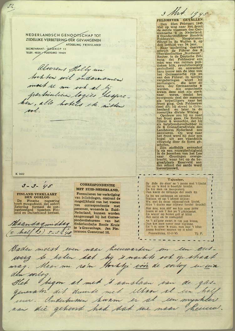 (± half 3) 5-3-'45 Vader moest even naar Leeuwarden om een aus-